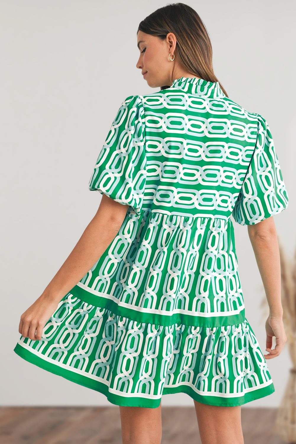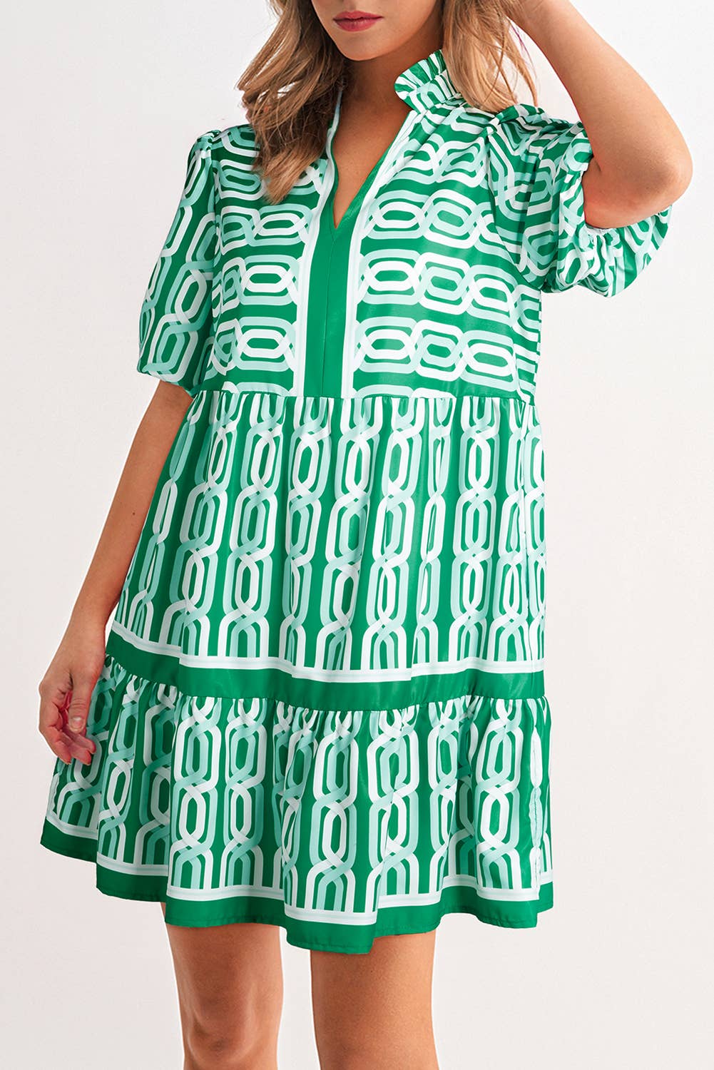 Abstract Print Bubble Short Sleeve Mini Dress | S-XL: As shown / Missy / L