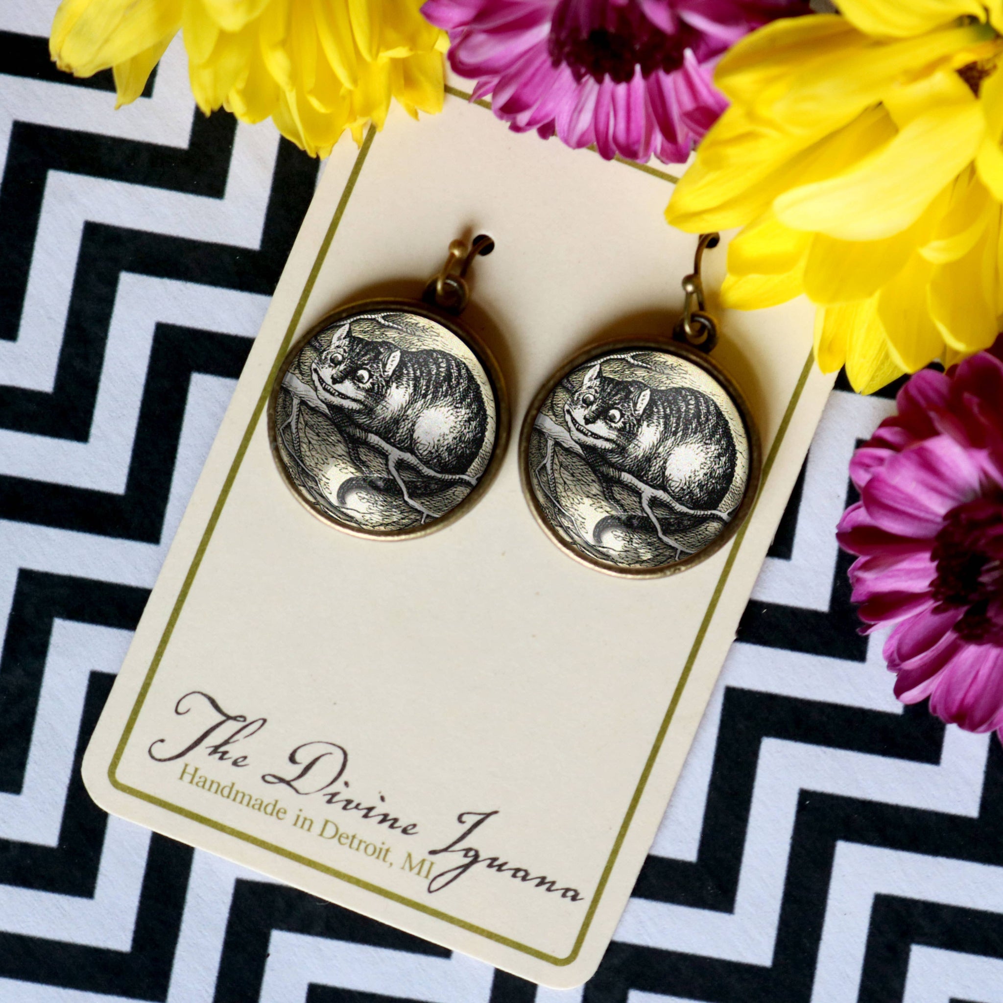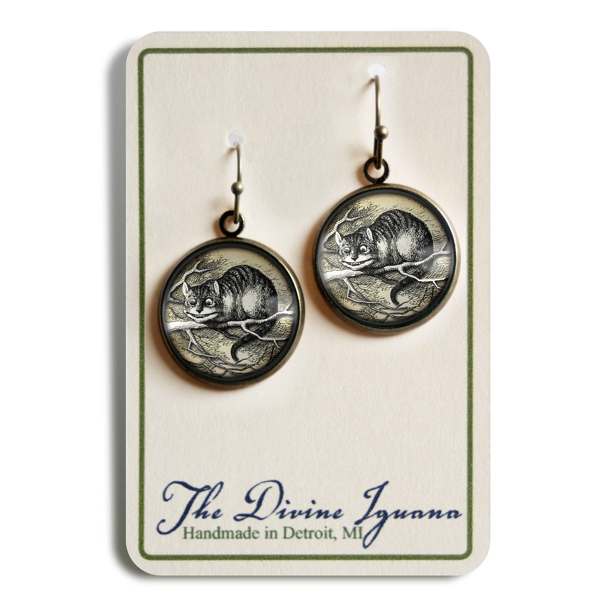 Whimsical wonderland earrings featuring an iconic illustration by Sir John Tenniel.