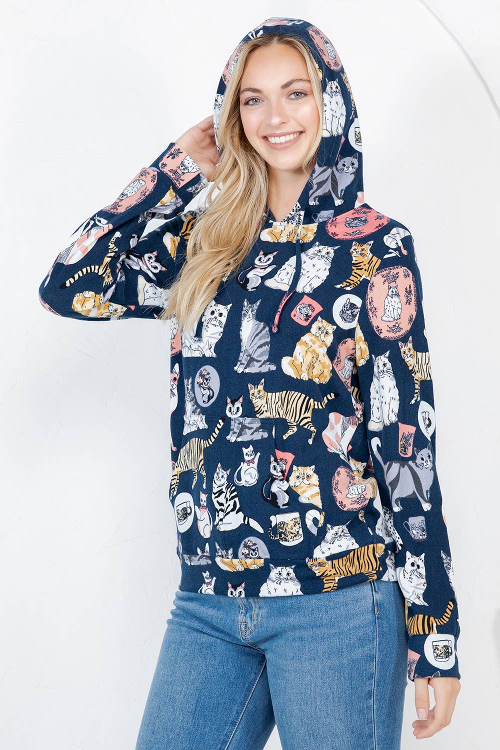 This hoodie is a must-have for any cat lover. Its unique cat print adds a fun touch to any outfit, while the soft and stretchable material ensures ultimate comfort. Plus, it even has a comfy pocket to keep your hands warm on those chilly days.