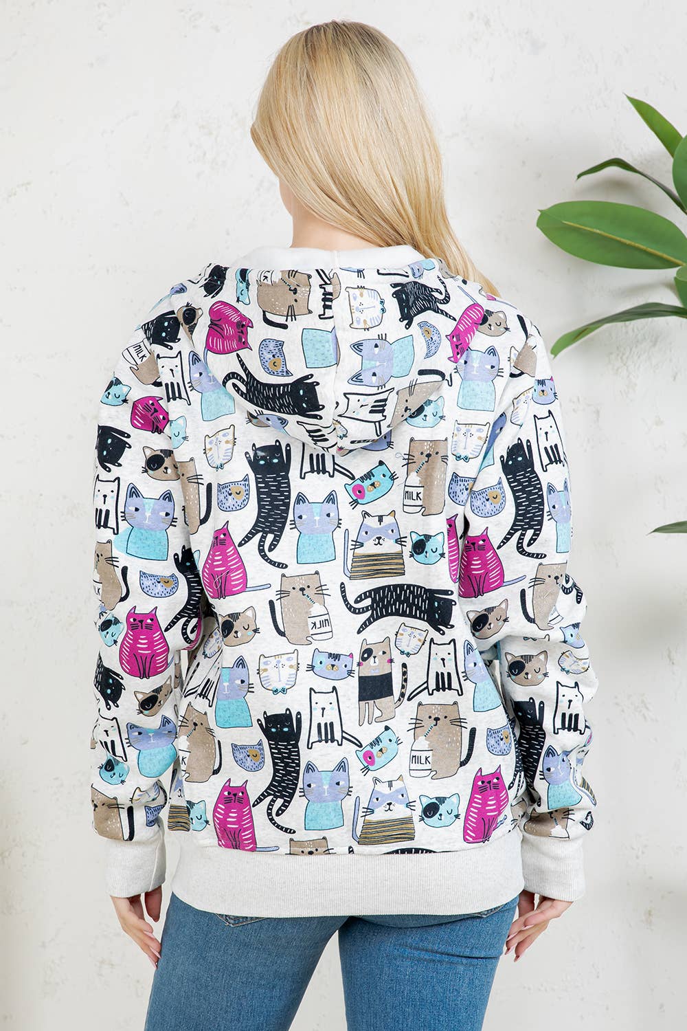 Indulge in luxurious comfort with our Colorful Cat Fleece Zipper Hoodie. The striking pop art design features a variety of cats, adding a touch of whimsy to your wardrobe. Stay cozy and warm during the fall and winter months with this essential piece. Upgrade your style game with this exclusive and stylish zipper hoodie.
