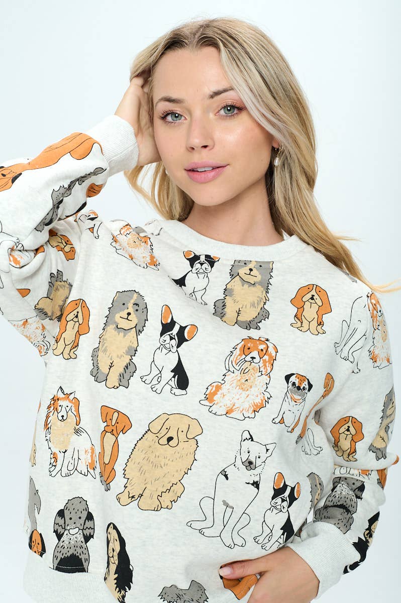 COLORFUL DOGS PRINT SWEATSHIRT 70% COTTON, 28% POLYESTER, 2% SPANDEX