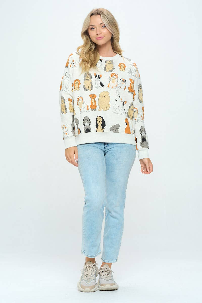 COLORFUL DOGS PRINT SWEATSHIRT: XL