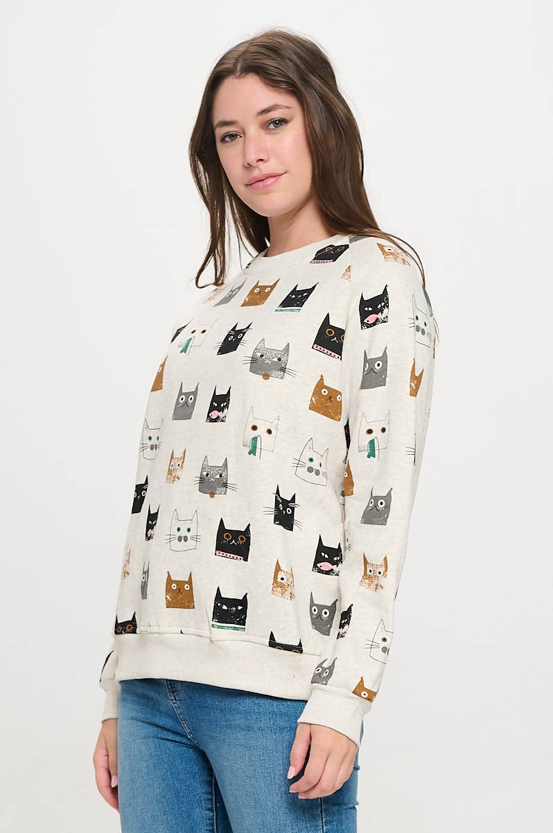 CUTE MULTI-KITTEN FACE SWEATSHIRT: L