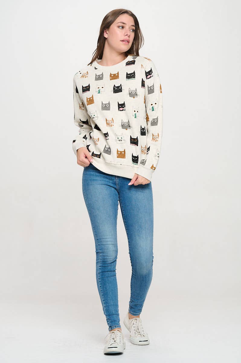 CUTE MULTI-KITTEN FACE SWEATSHIRT: M