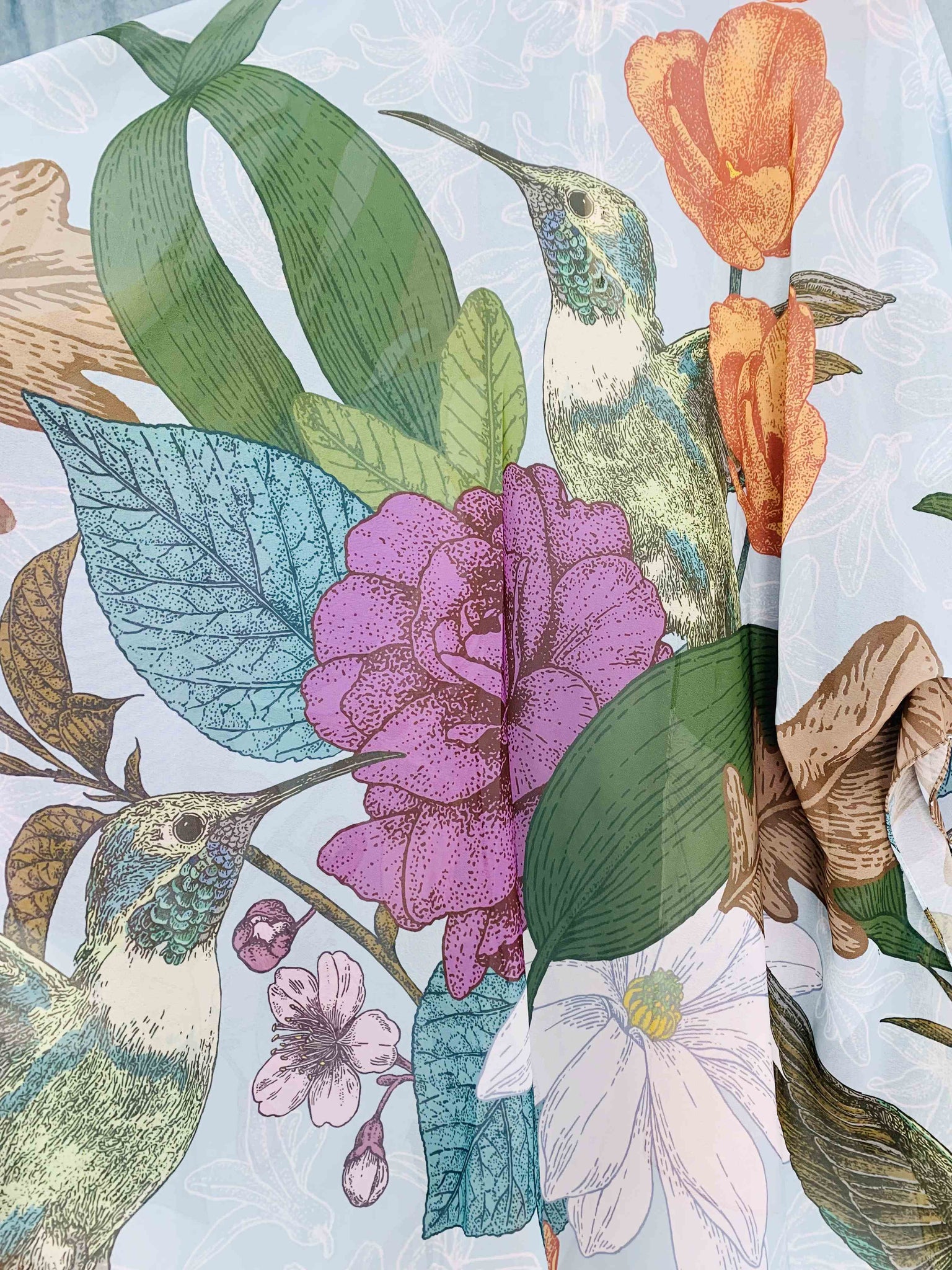 JC070965 Blue-Purple Floral Hummingbird Chiffon Kimono