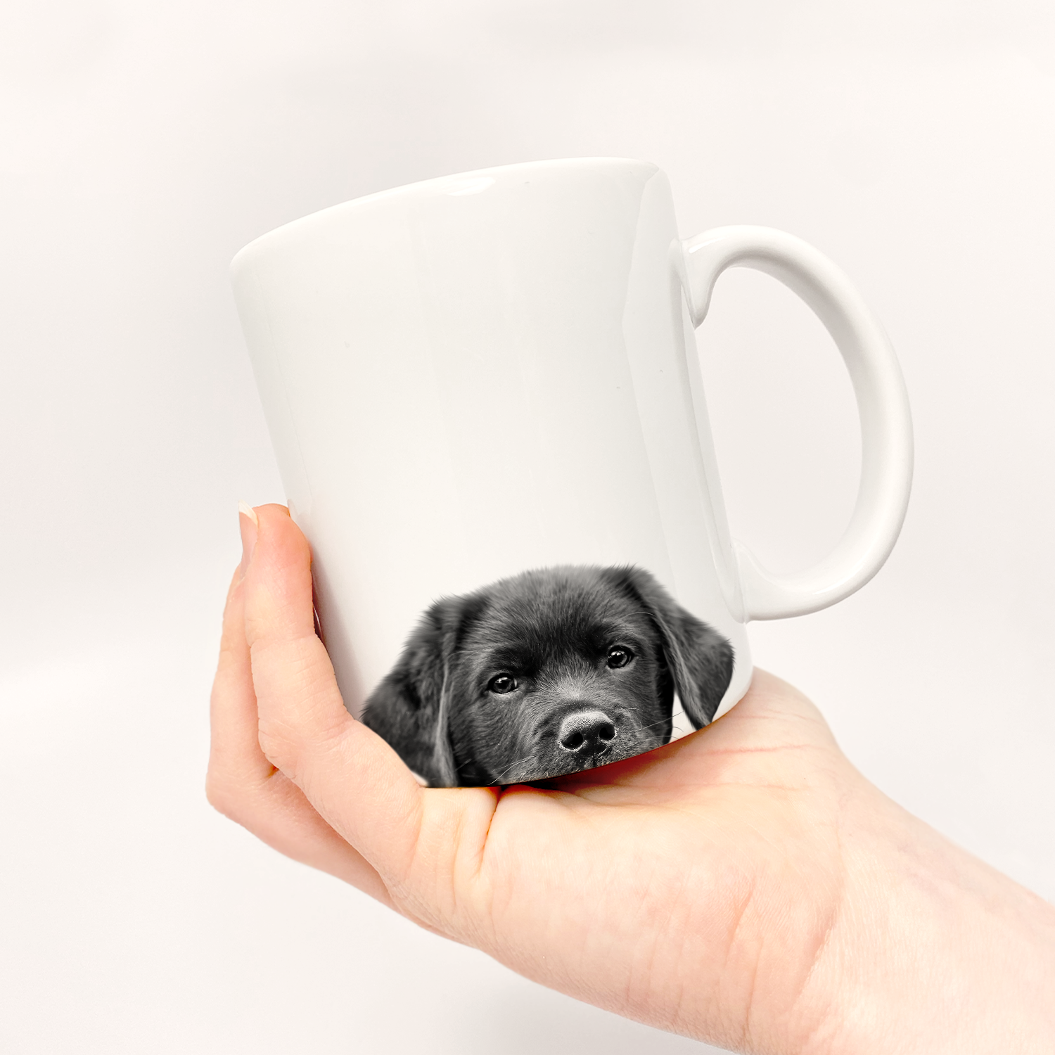 Sip your morning brew with a smile as you enjoy our Peeking Black Lab Puppy Mug. Each mug features an adorable Black Lab puppy peeking up, ensuring every gulp is accompanied by a hint of joy. Crafted from durable ceramic, this mug is both microwave and dishwasher safe, making it as functional as it is charming. It’s a cozy addition to any Black Lab lover’s kitchen.