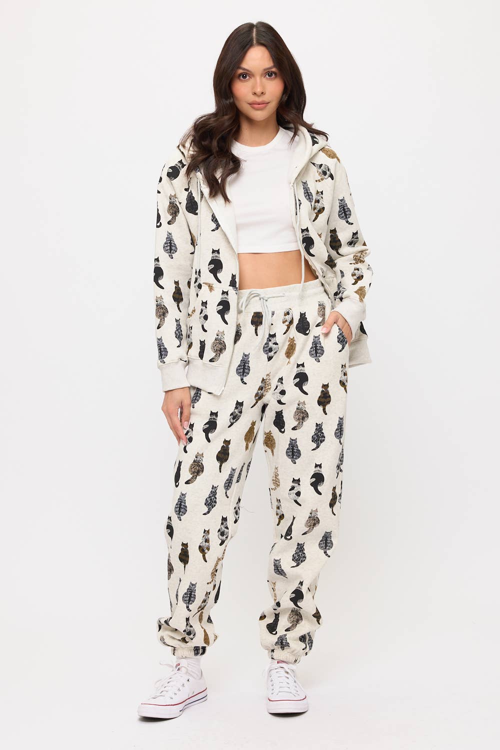 WHIMSICAL CAT TAILS PRINT ZIP UP HOODIE: L
