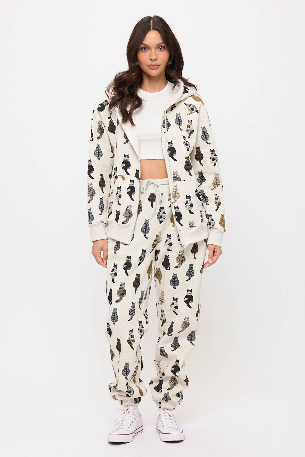 WHIMSICAL CAT TAILS PRINT ZIP UP HOODIE: M