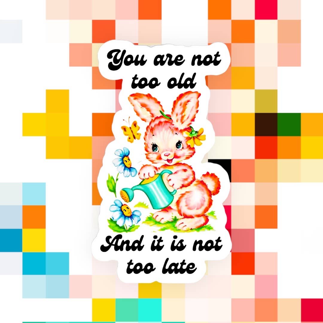 You Are Not Too Old & It Is Not Too Late Sticker is approximately 3 inches in size.